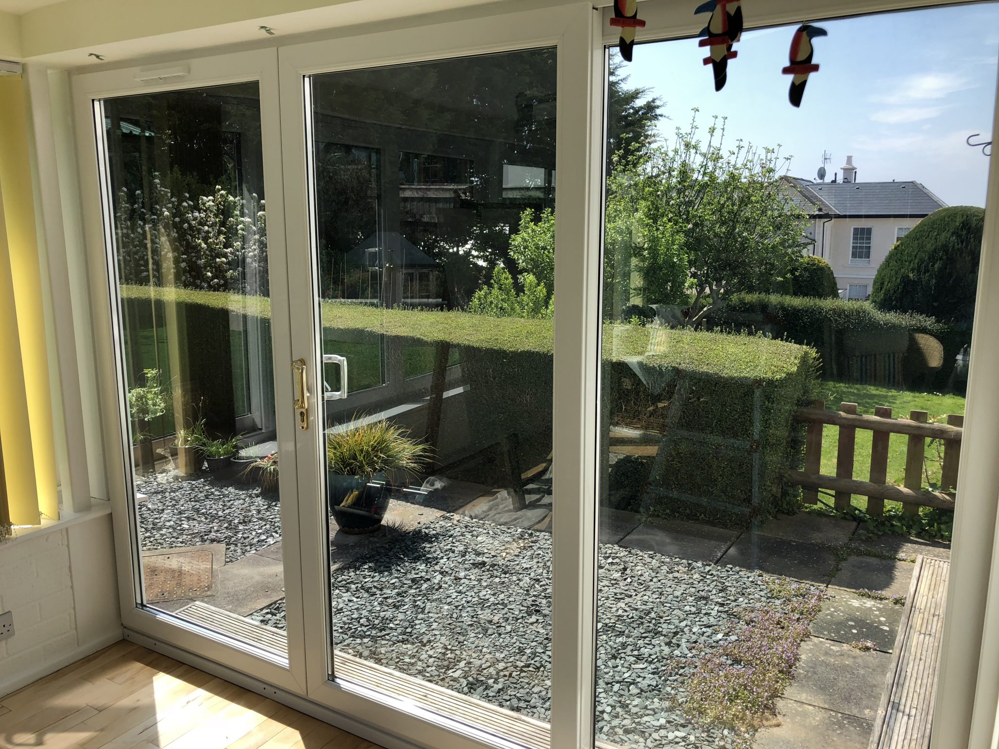 Our latest project in Teignmouth was an installation of Johnson Daylight Natural 60 window film to some patio doors. Initially the aim was to increase privacy and block UV rays but with a light room this is difficult to achieve unless you make all the window considerably darker and our customer wanted to maintain the light levels.