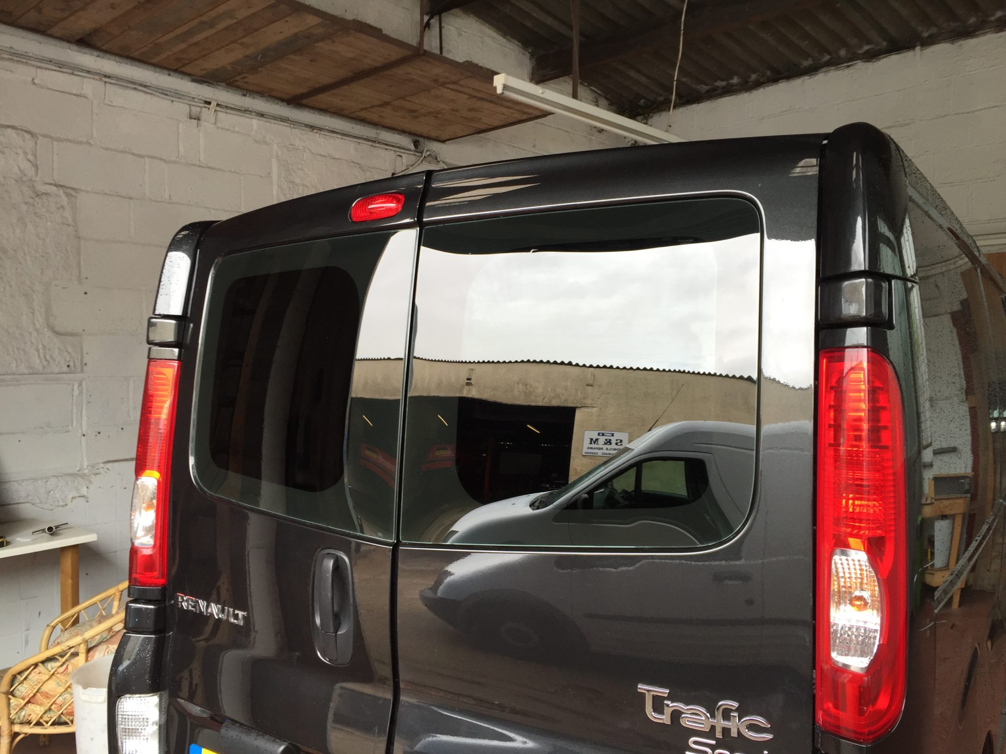 Renault Trafic with the rear doors tinted in Llumar ATC 05 window film. The Llumar ATC 05 provides a full privacy tint to the rear doors of vans and cars, this shields your valuables or tools from prying eyes!